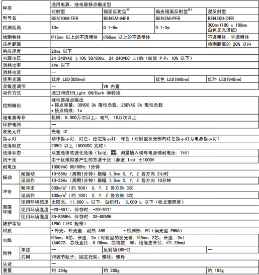 autonics奧托尼克斯 光電傳感器BEN 參數
