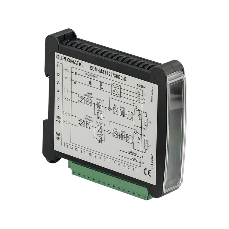 EDM-M* 卡是用于開(kāi)環(huán)比例閥控制的數(shù)字放大器,用于導(dǎo)軌安裝 DIN EN 50022。