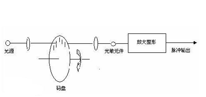 (圖片文字依次為:光源、碼盤、光敏元件、放大整形、脈沖輸出)