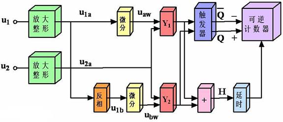 為了判斷旋轉(zhuǎn)方向 ,可以采用兩套光電轉(zhuǎn)換裝置。令它們在空間的相對位置有一定的關(guān)系,從而保證它們產(chǎn)生的信號在 相位上相差1/4周期